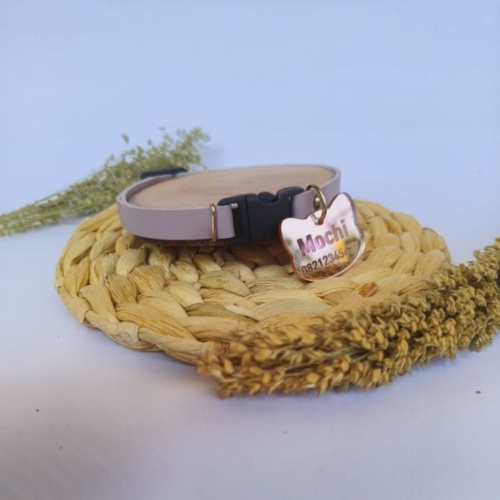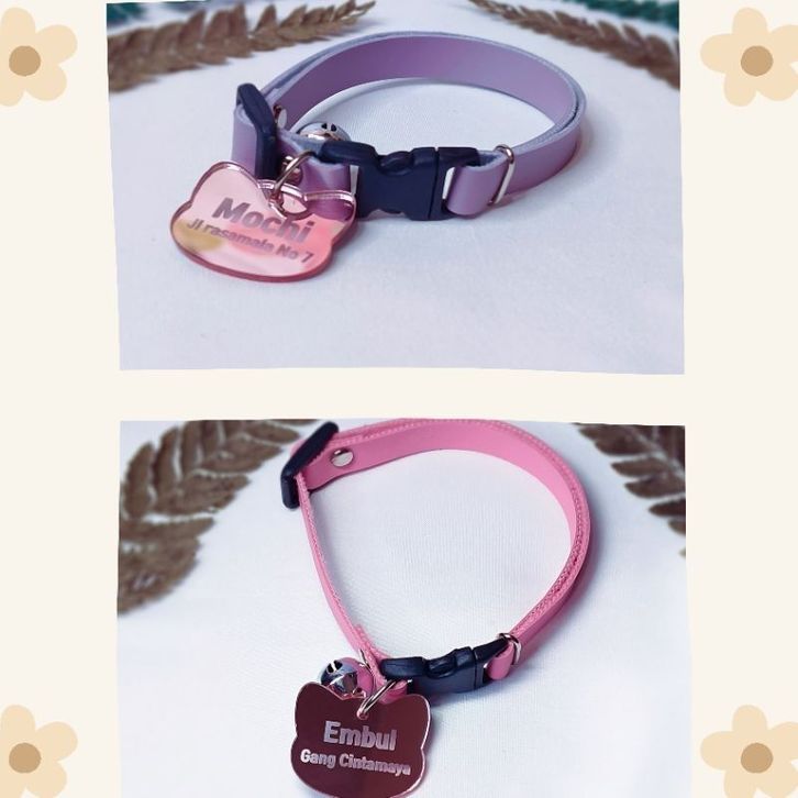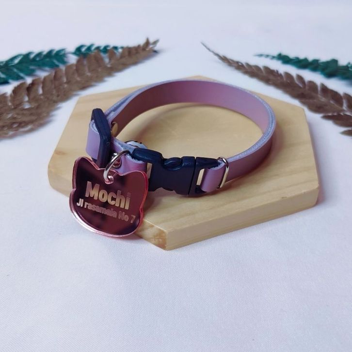 Kalung Kucing Custom Nama Free Lonceng Bahan Akrilik Rosegold Premium