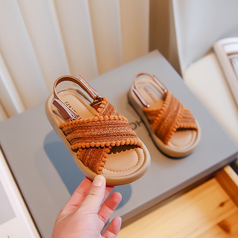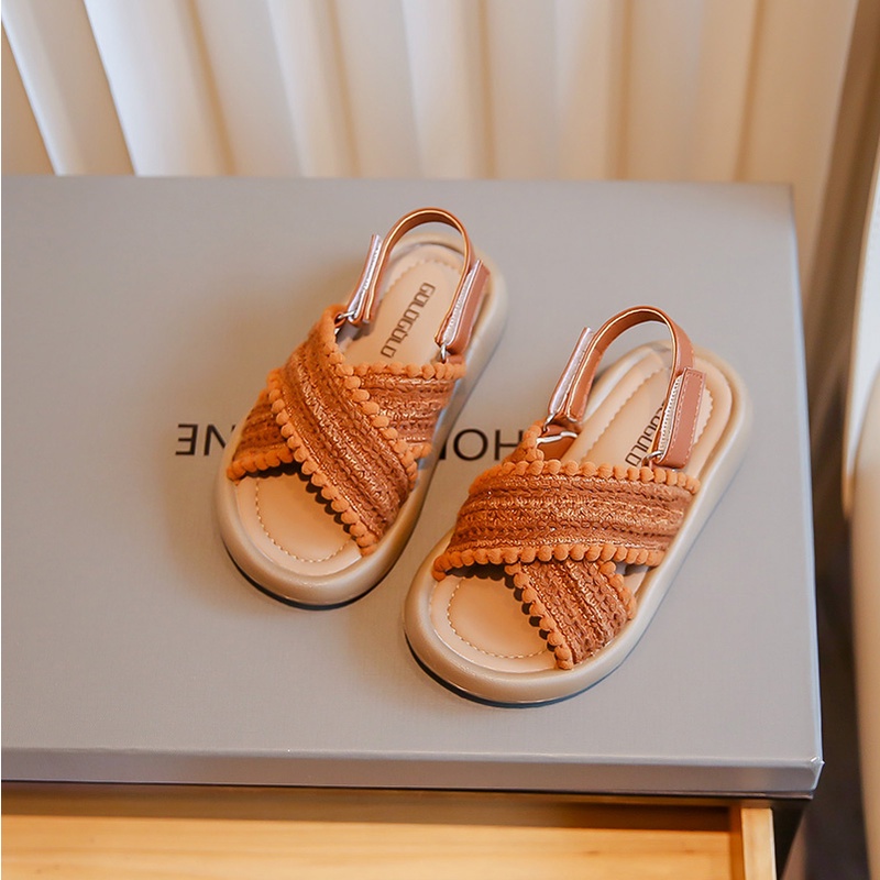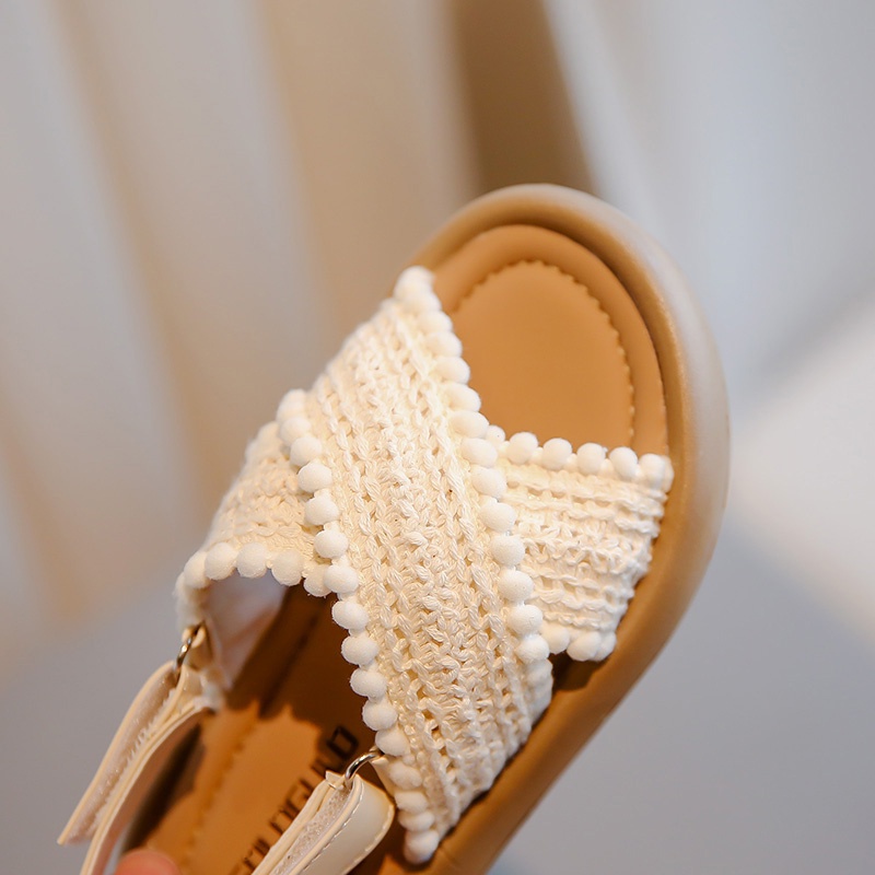 Sandal Slip-on Warna Polos Untuk Bayi Perempuan Sandal Renda Manis Sol Lembut Sepatu Anak Nyaman Ukuran 23-37 2 Cara Mem