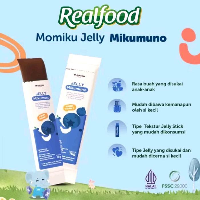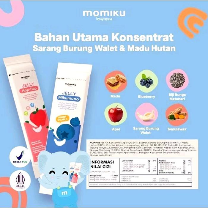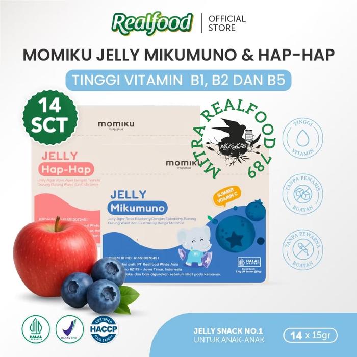 FLASH SALE REALFOOD MOMIKU JELLY HAP HAP & JELLY MIKUMUNO 14 SCT ( CEMILAN SEHAT BUAT SI KECIL DENGAN FORMULASI BUAH DAN SARANG BURUNG WALET ) JELLY MIKUMUNO 14 SCT