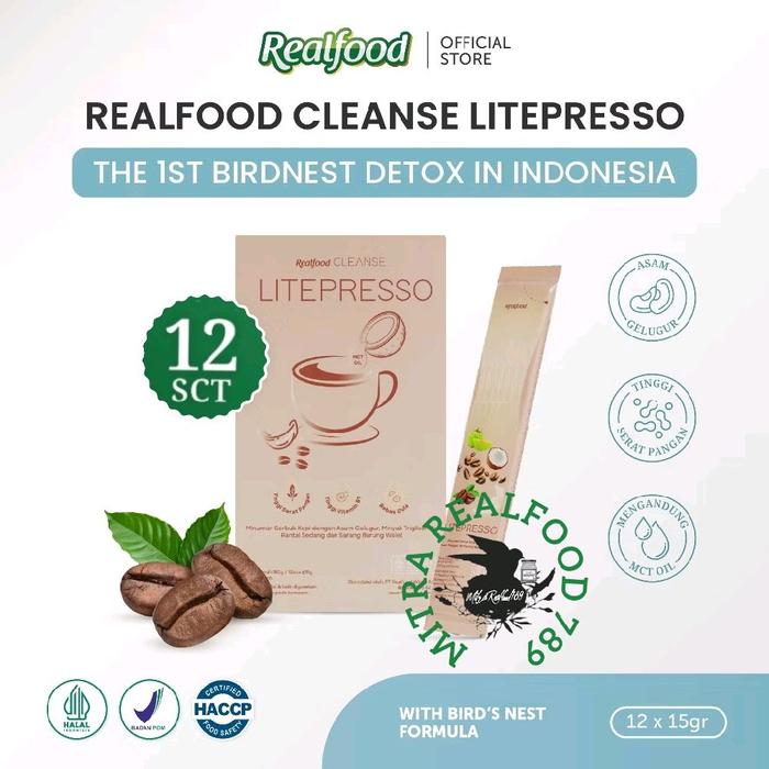 FLASH SALE REALFOOD CLEANSE LITEPRESSO MCT COFFEE 12 SCT ( MINUMAN SERBUK FORMULASI KOPI DAN SARANG BURUNG WALET UNTUK DIET )