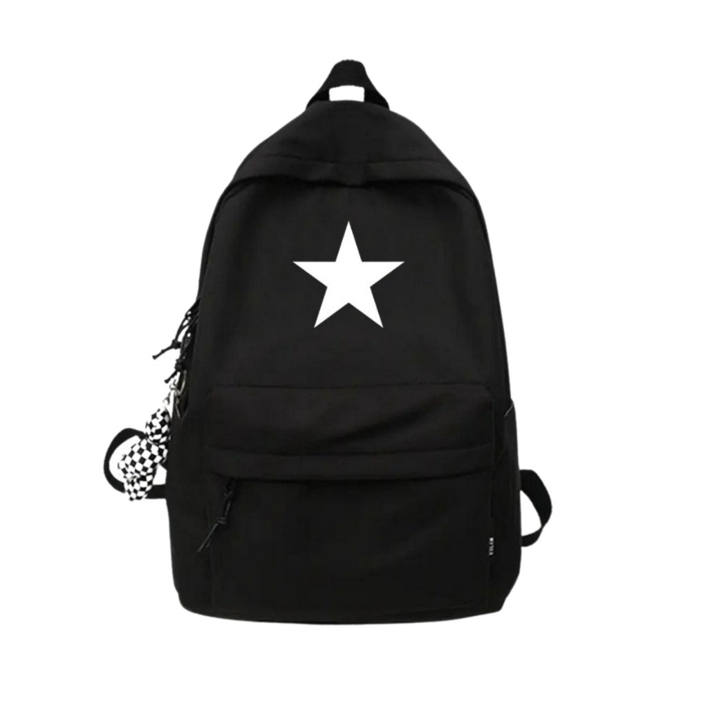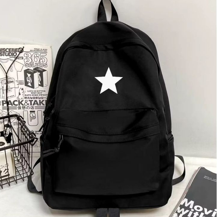 YOW Tas Ransel Sekolah Unisex Bahan Dinir Tas Cowok Backpack Motif Bintang Hitam