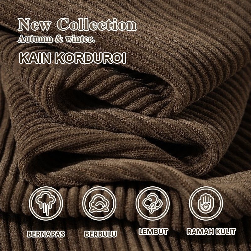Celana Corduroy Pria Jumbo M-5Xl Corduroy Pants Pria Celana Korduroy Pria Gombrong Tebal Celana Kulot Pria Coklat Celana