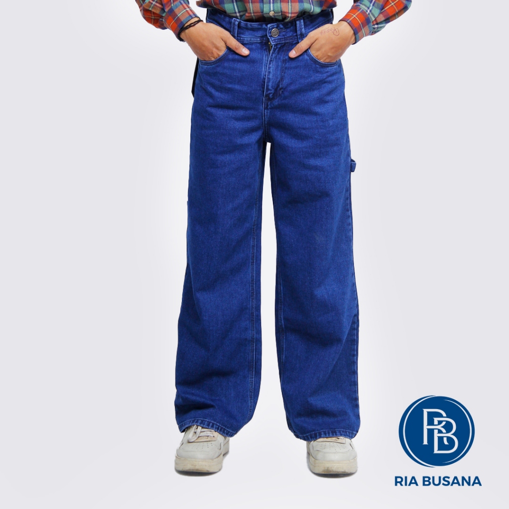 Kendy - Celana Jeans Panjang Dewasa Pria Letro Baggy Lebar Gombrong Skena Blue
