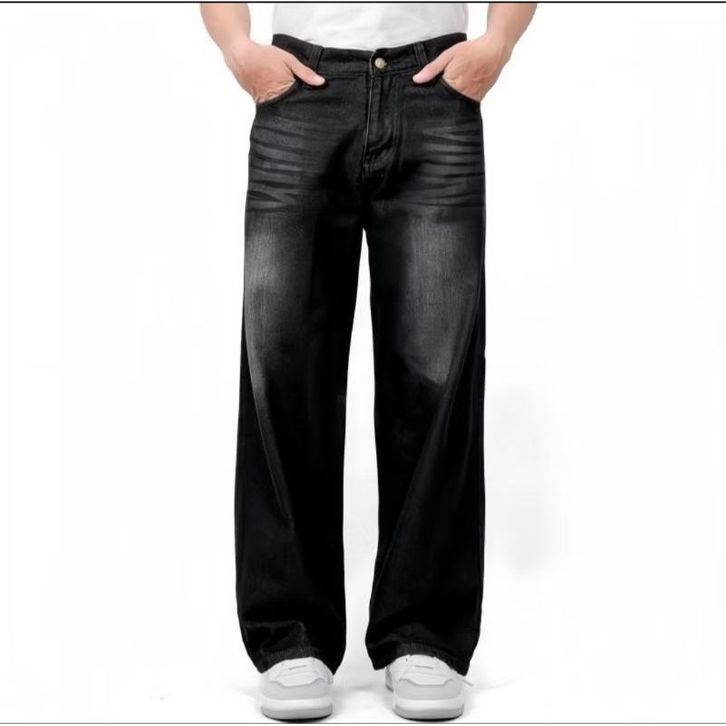 Celana Jeans Panjang Pria Loose Wisker Skena Baggy Hitam Retro Jeans Size 27 - 36 Reguler