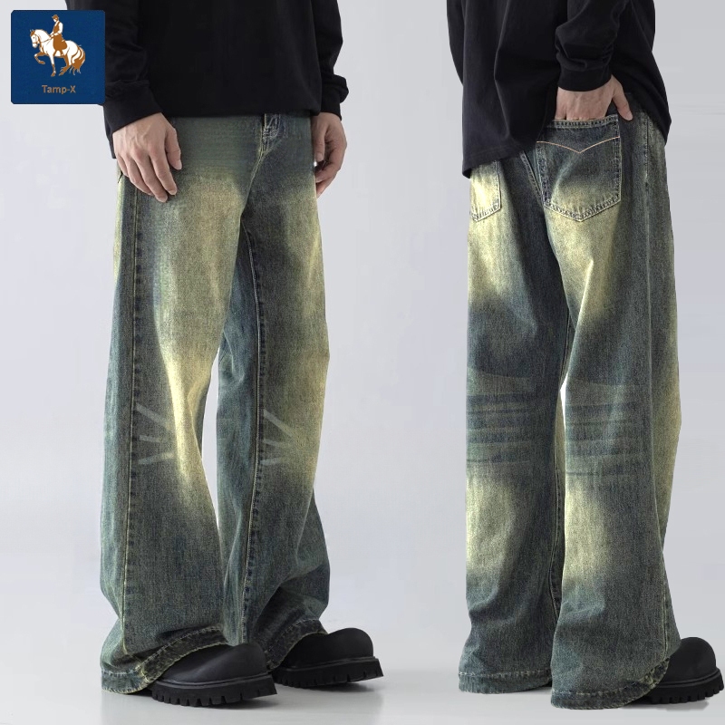 Tamp-X Oversize Baggy Celana Jeans Pria Gombrong Skena Denim Jumbo Loose Jeans Korean Style Straight Retro Vintage Biru