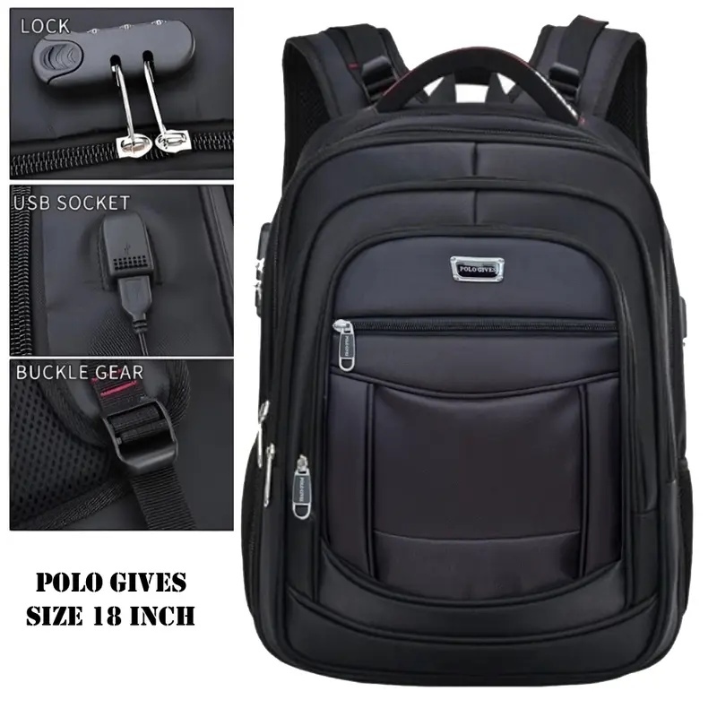 Polo GIVES 18 IN EXPANDABLE Tas Ransel Kerja Tas sekolah Kunci Usb Port POLO Import
