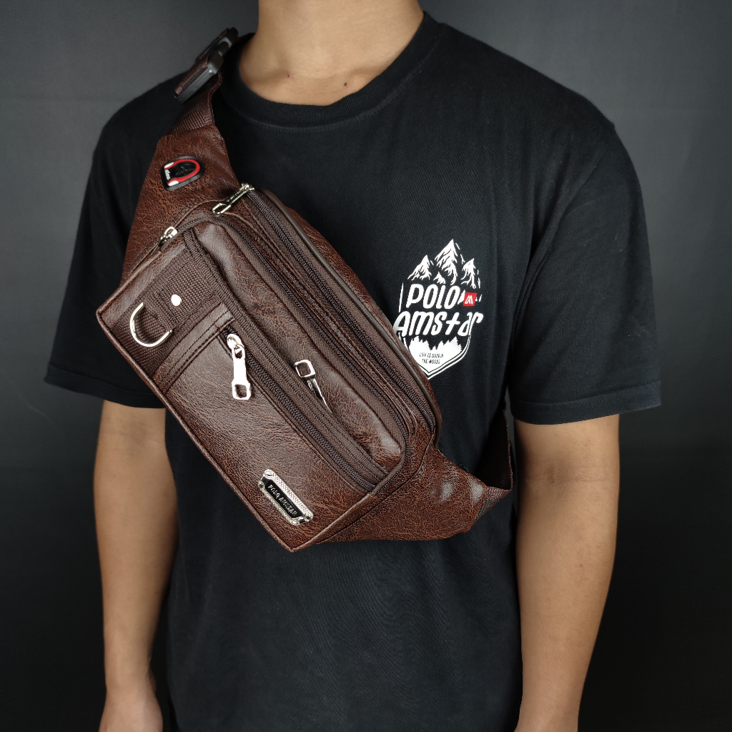 Tas Pria Wanita Waistbag Kulit PU Polo AMSTAR Tas Pinggang Selempang Bahu Terlaris
