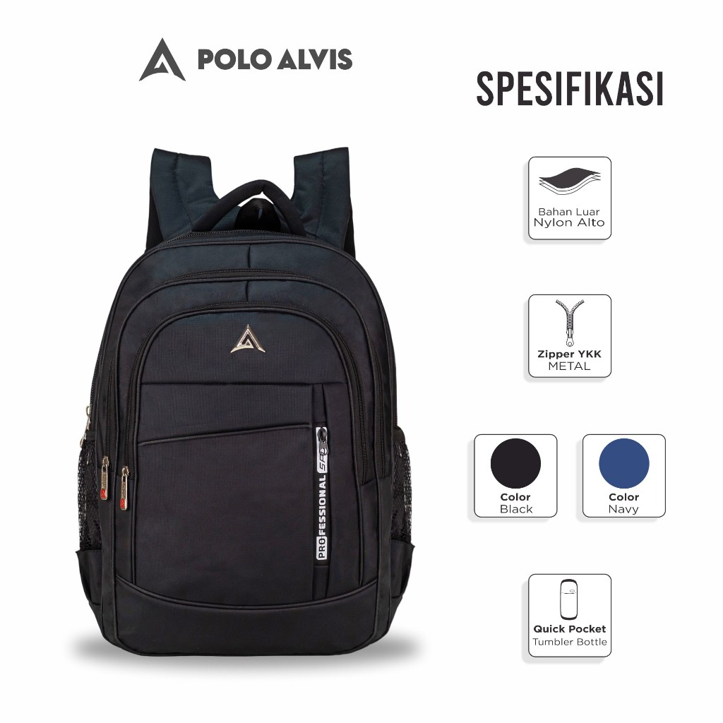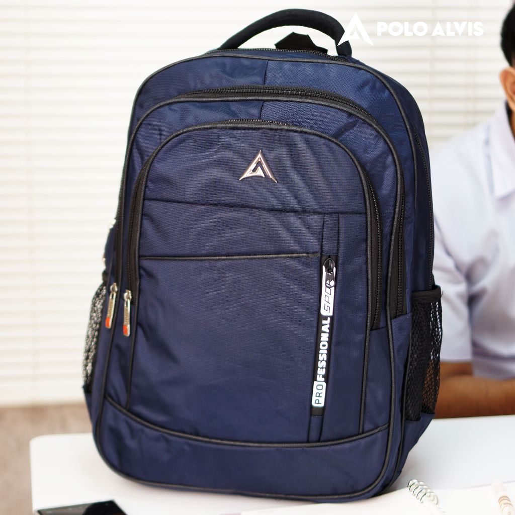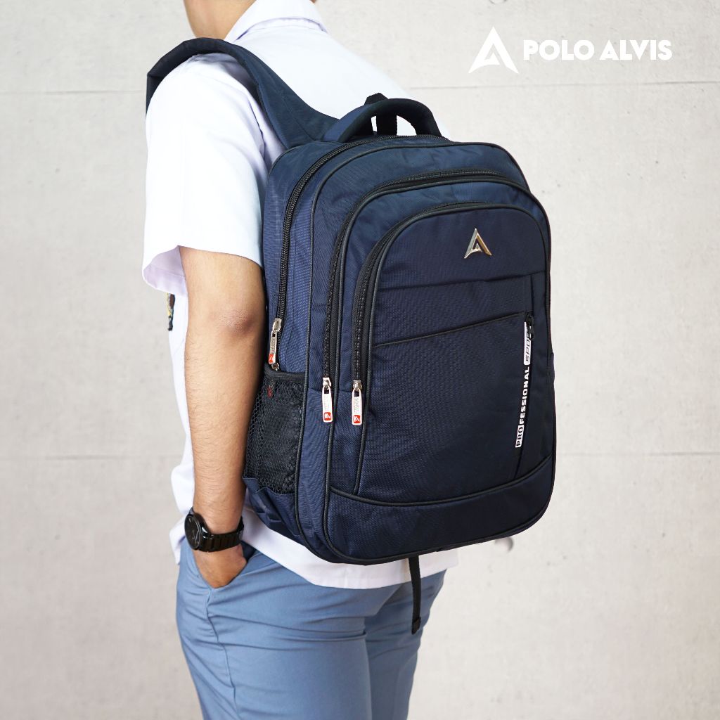 POLO ALVIS - Pro Swift Tas Laptop Sekolah SMP SMA Kuliah Kerja kantor Bahan Nylon Tebal + Rain Cover