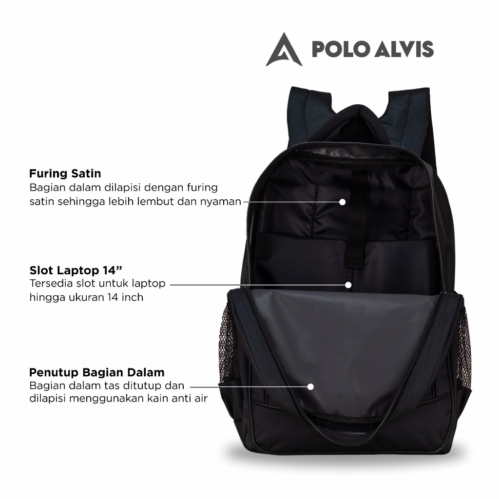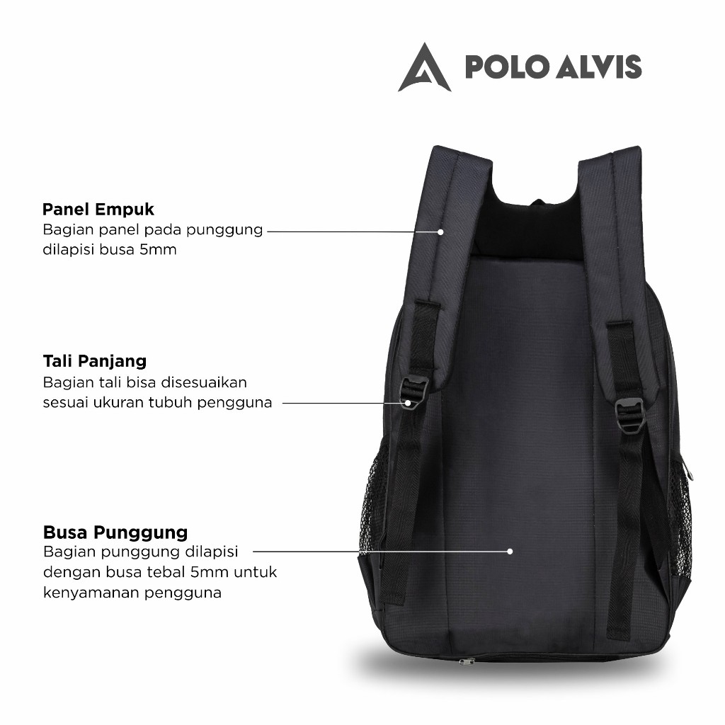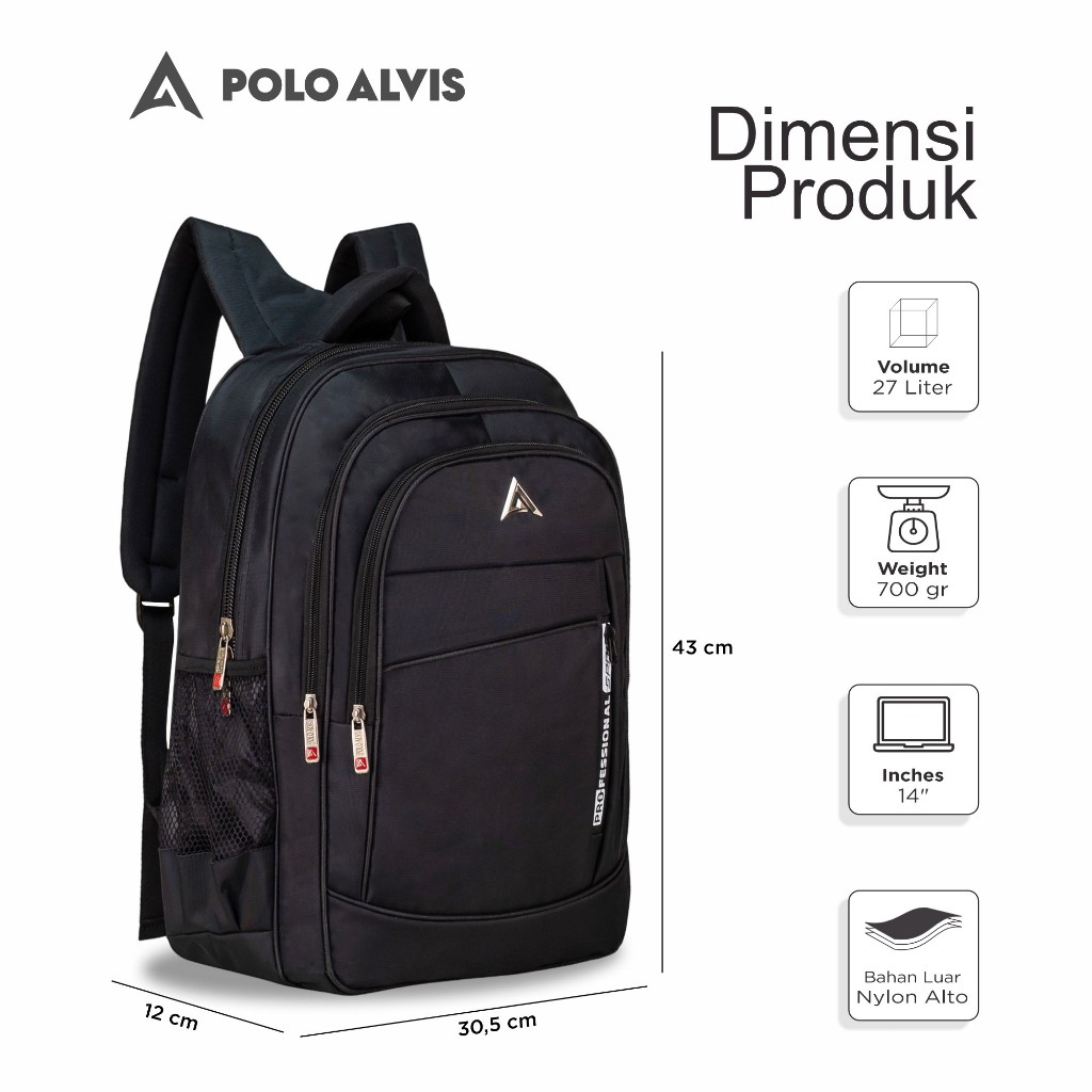 POLO ALVIS - Pro Swift Tas Laptop Sekolah SMP SMA Kuliah Kerja kantor Bahan Nylon Tebal + Rain Cover