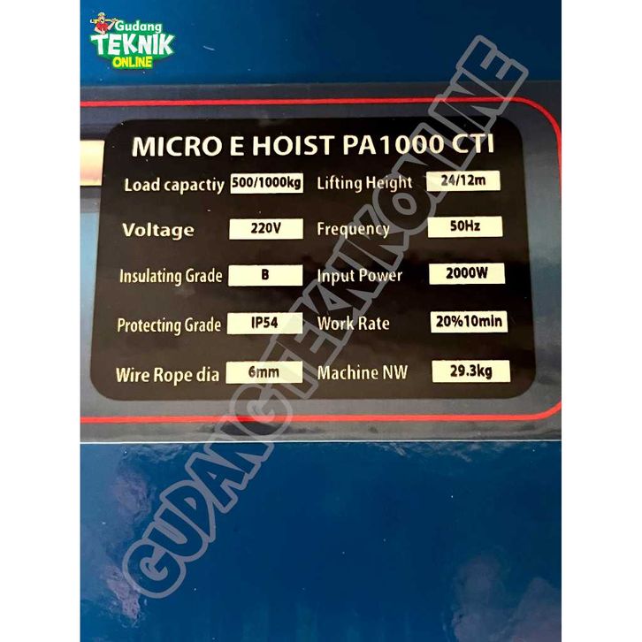Hoist Katrol Listrik MULTIPRO PA500CTI PA1000CTI 12M 500KG 1000KG 220V / Electric Hoist Winch Katrol Kerekan Takel