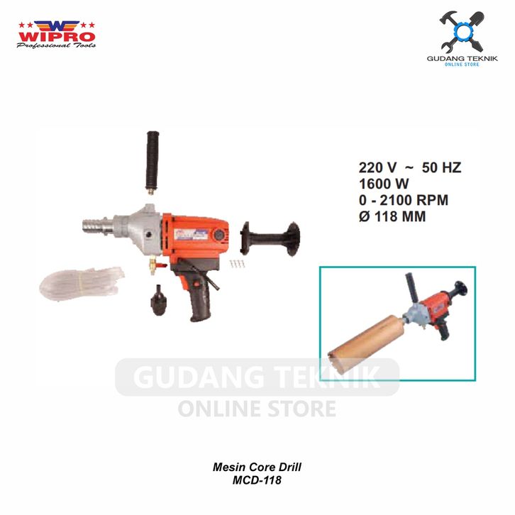 Mesin Core Drill 118 mm WIPRO MCD-118 / Mesin Bor Coring Portable 1600W WIPRO MCD118 - Coring Drill Portable MCD 118