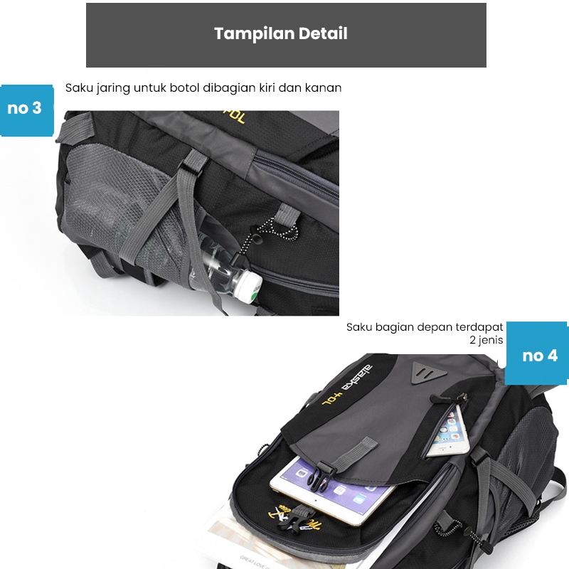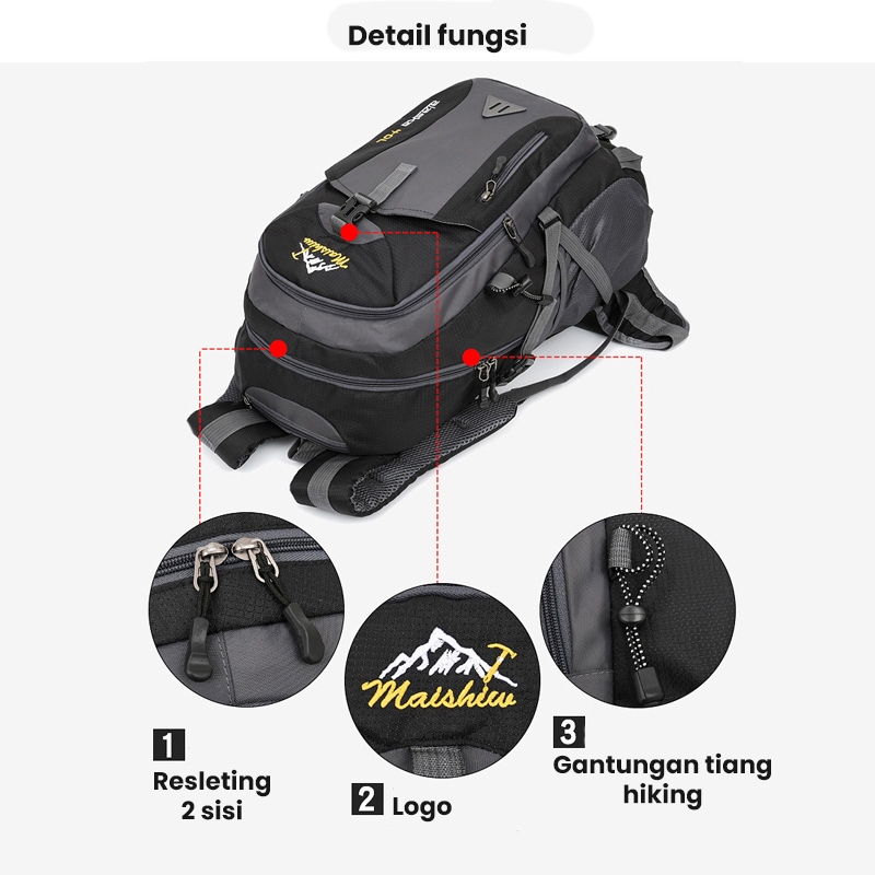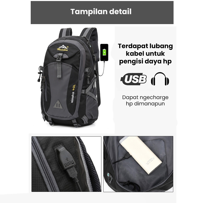 Techdoo 40L Tas Ransel Gunung Pria Hiking Camping Backpack Laptop Unisex Anti Air Travel Bag TR109