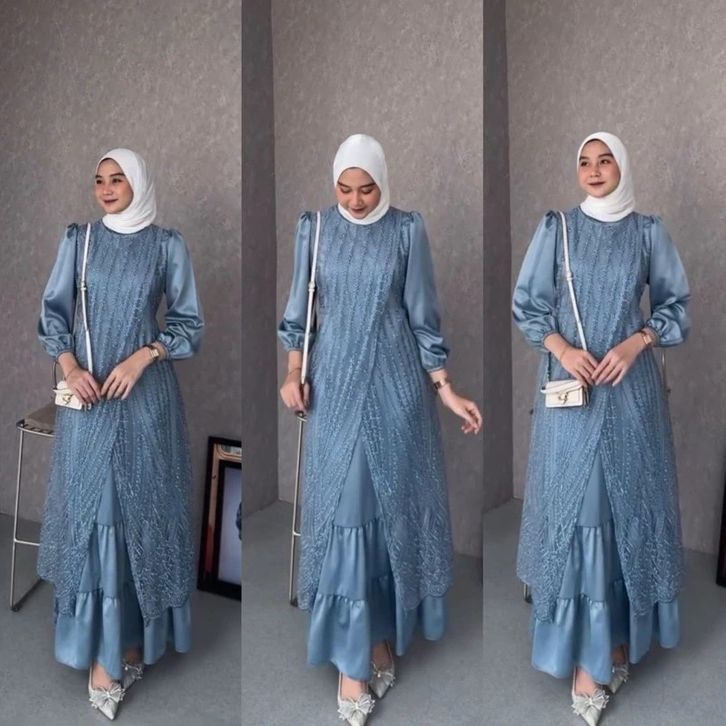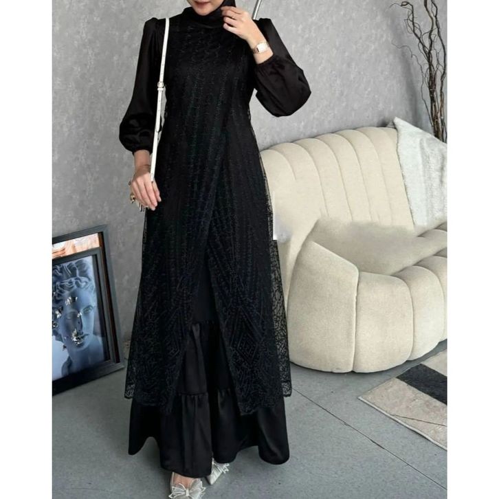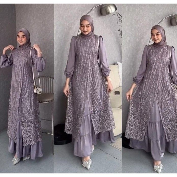 Gamis Lebaran 2026 Baju Brukat Wanita Kondangan Baju Gamis Brukat Bahan Maxmara Mix Brokat Timbul