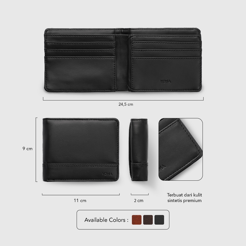 VONA Irving Wallet - Dompet Pria Kulit PU Pendek Lipat 3 Ruang