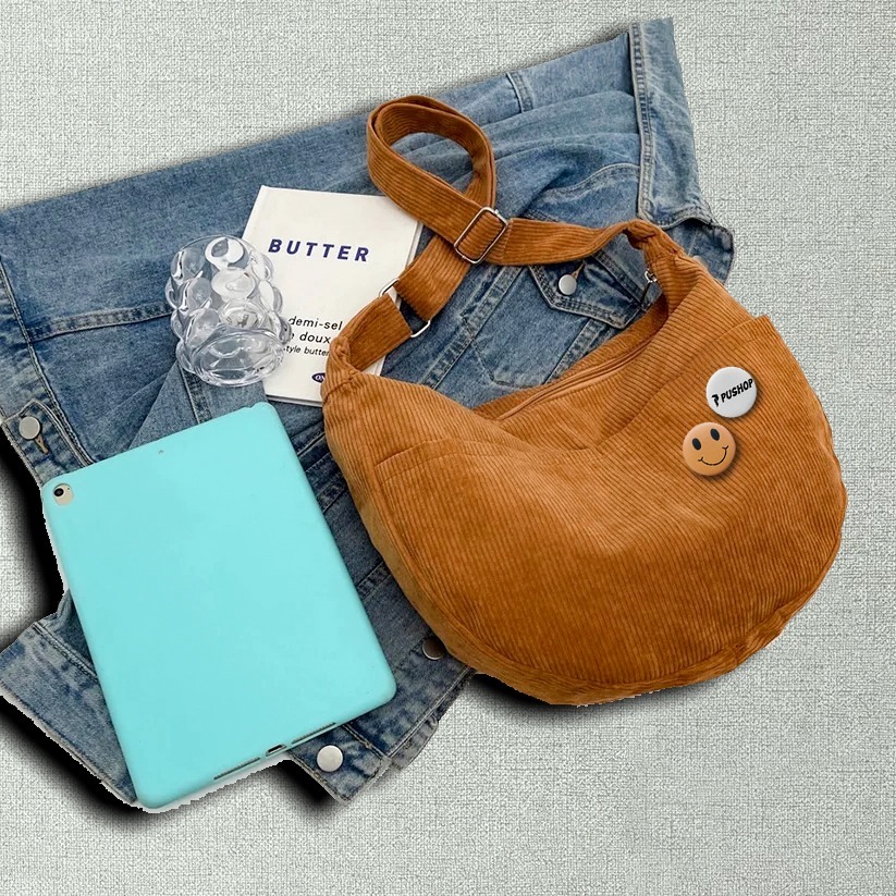 PUSHOP Tas Selempang Corduroy Pria Wanita ASTER - Slingbag Corduroy Uniseks FREE 2 PIN BROS Sling bag Casual Terbaru