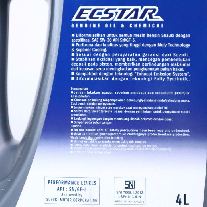 Promo SGO Ecstar F9 SAE 5W-30 4 Liter SN/GF-5 Oli Mobil Mesin Bensin Pelumas Full Synthetic Suzuki