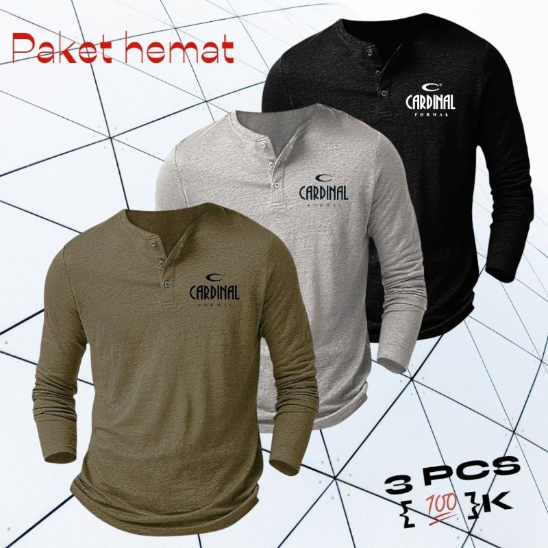Paket Hemat 3 Pcs Kaos Kancing Pria Lengan Panjang /Kaos LOGO CR /kaos Distro /Kaos