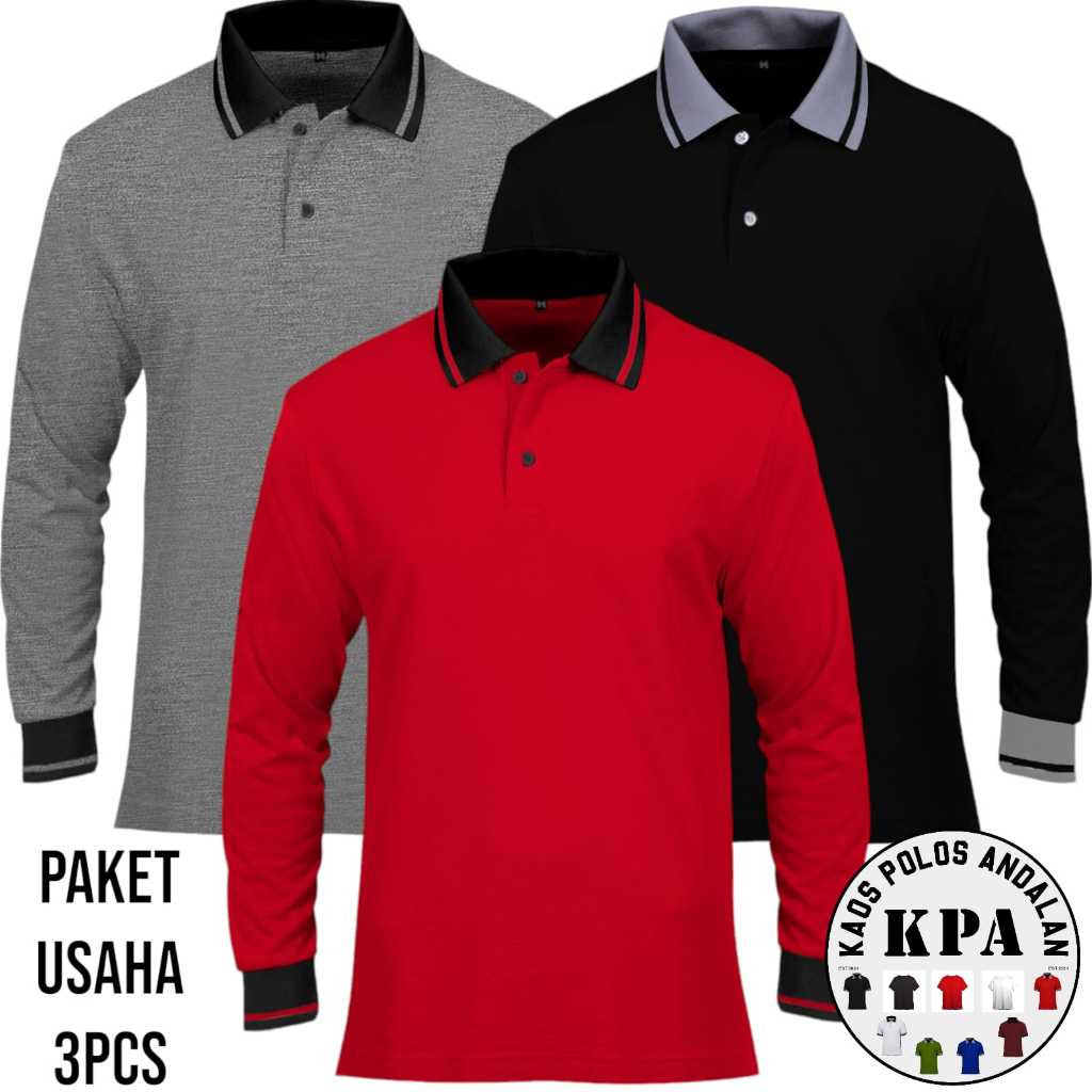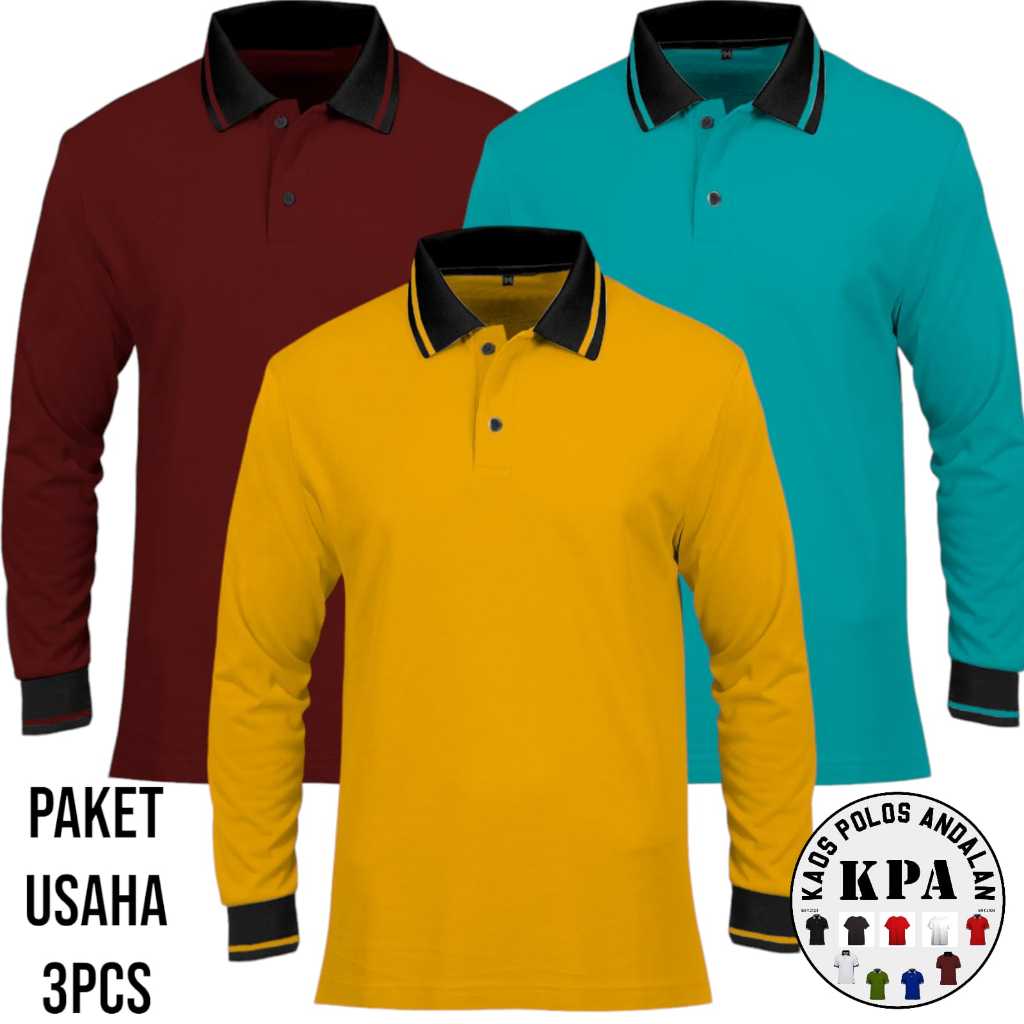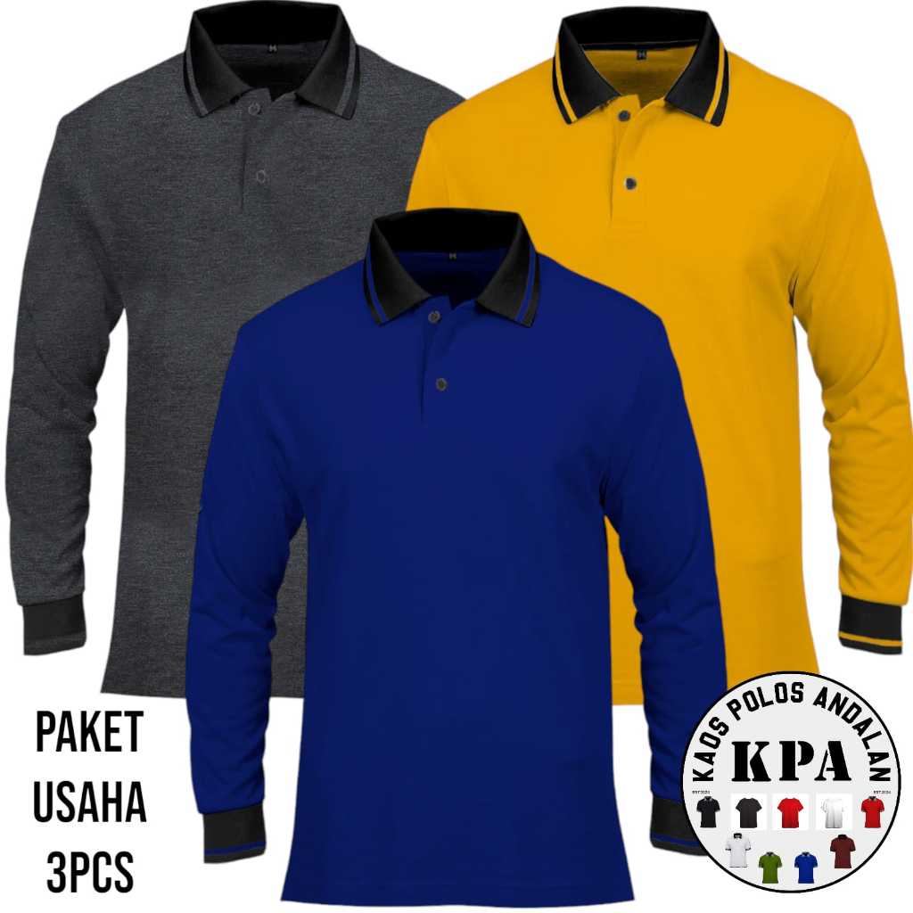 KAOS POLO PRIA/PAKET 3pcs KAOS LENGAN PANJANG/ KAOS POLO SHIRT POLOS HITAM PUTIH KERAH STRIPE | COWOK/ WANITA