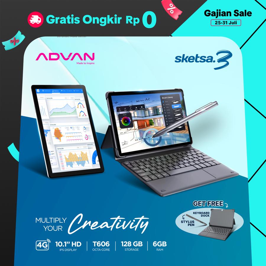 Inculde Keyboard & Pen | ADVAN SKETSA 3 6/128GB LTE - 10.1 HD IPS Dual Sim Card - tablet advan sketsa 3