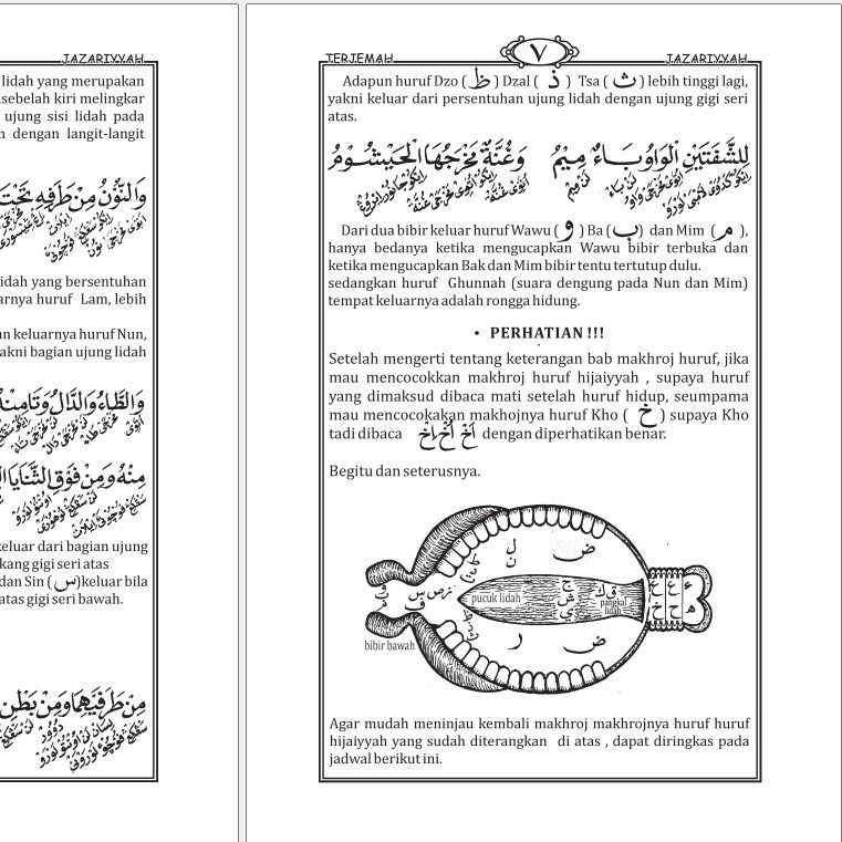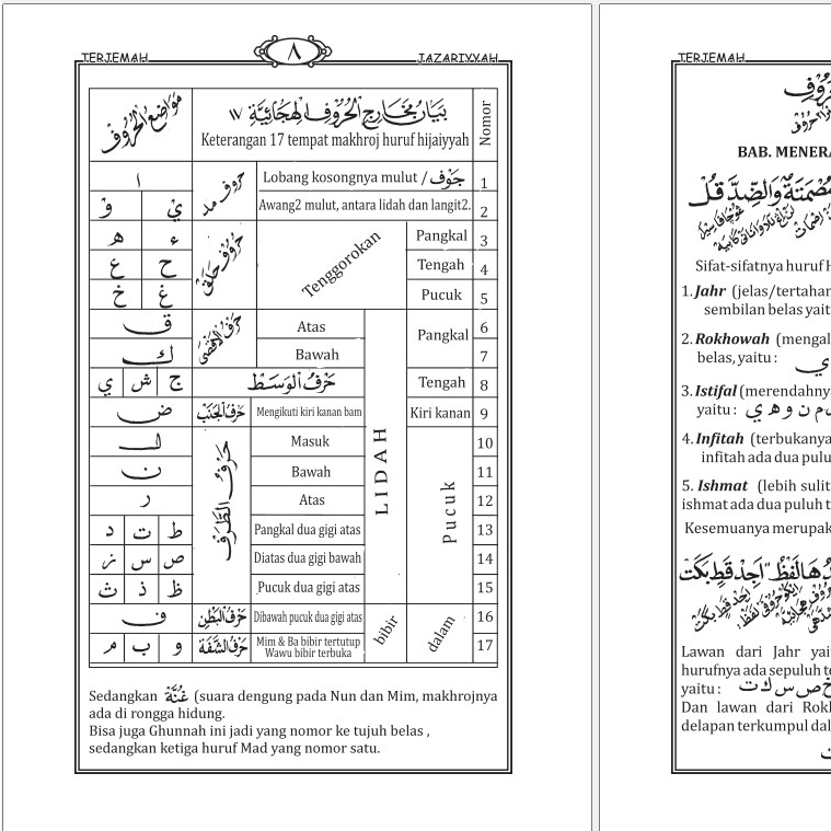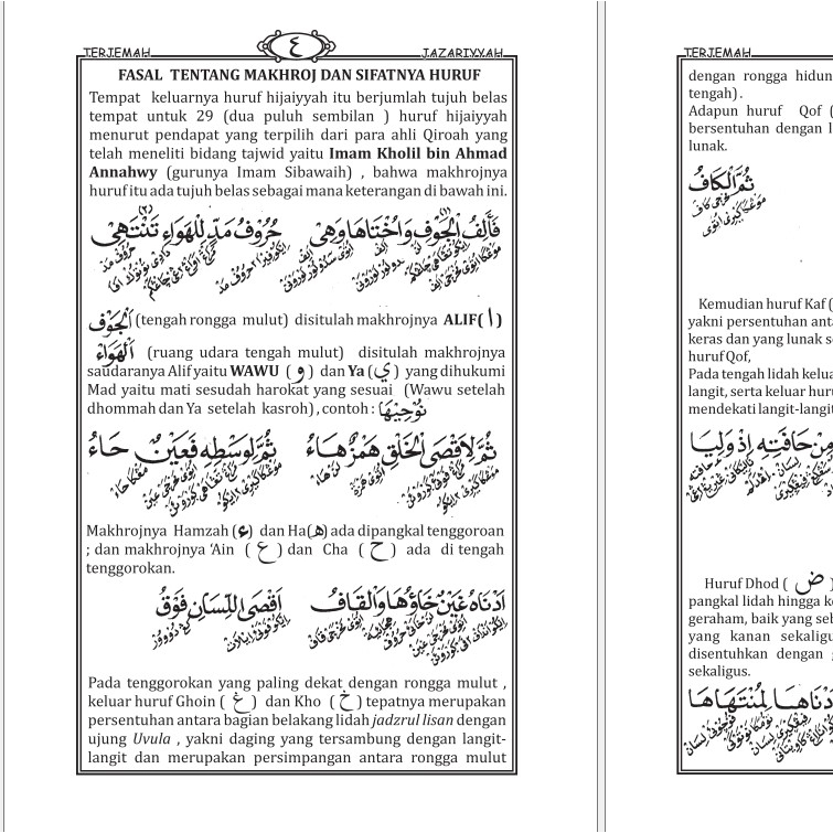 Terjemah Jazariyah Ilmu Tajwid Makna Jawa Pegon dan Indonesia
