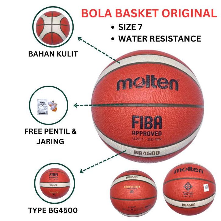 TERLAKU BOLA BASKET MOLTEN BG4500 ORIGINAL 100 FREE PENTIL JARING SIZE 7 icacl