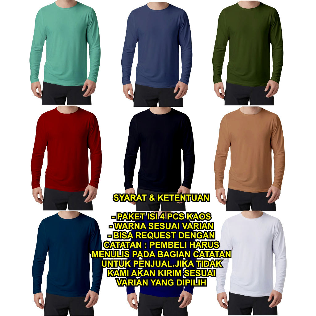 paket hemat 4 pcs kaos lengan panjang | baju oblong pria & wanita unisex