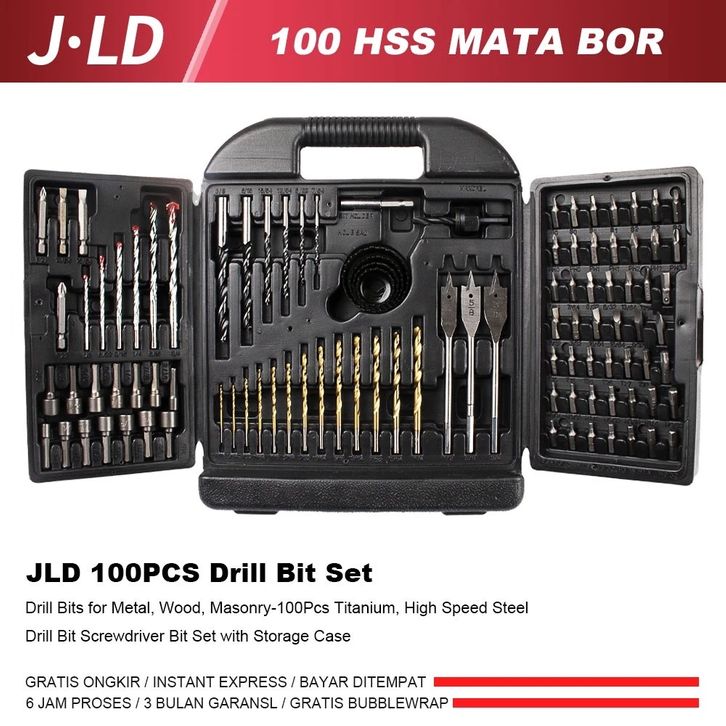 JLD 100pcs mata bor set Mata Bor untuk Logam, Kayu, Batu-100Pcs Titanium, Baja Kecepatan Tinggi