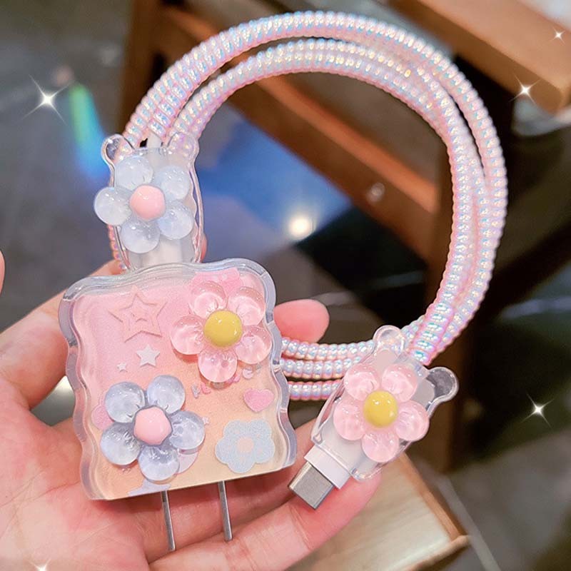 Pelindung Kabel Carger Iphone 18w & 20w Bunga Pelindung Adaptor Pelindung Kepala Carger Pelindung Kabel Charger Case Cha