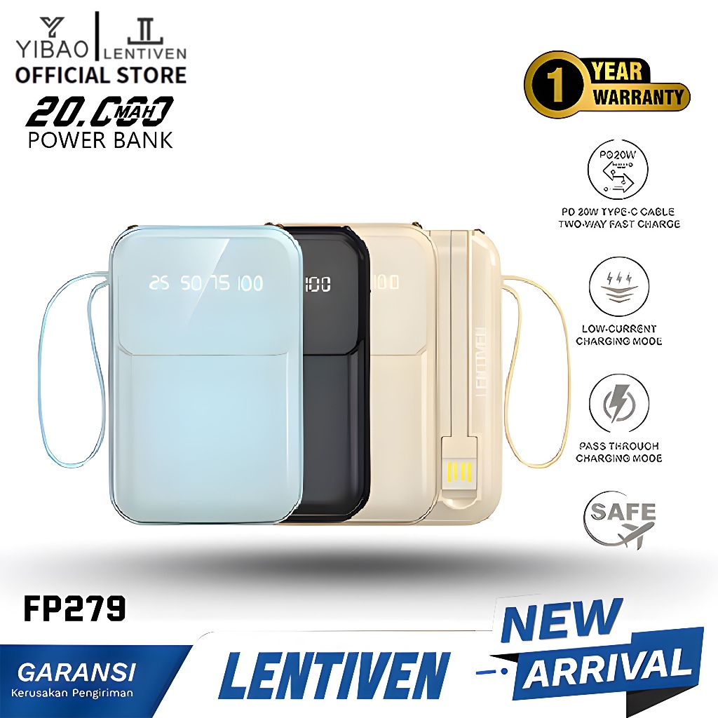 [Star] Powerbank YIBAO LENTIVEN 20000 mAh Mini With 4 Kabel Data Type C Micro USB Fast Charging LED Senter Display FP279