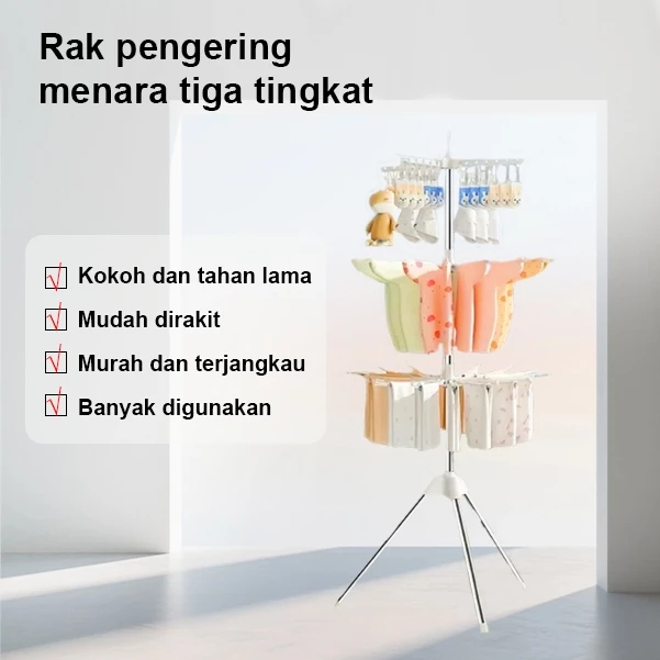 Jemuran Baju Menara 3 Tingkat-24Jepitan Baju-16 jari-jari