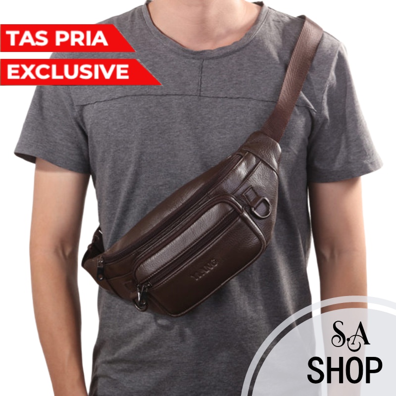Tas Waistbag Pria Kulit Tas Selempang Pria Kulit sintesis Tas Pinggang Pria Cowok Distro Kulit Kekinian Terbaru
