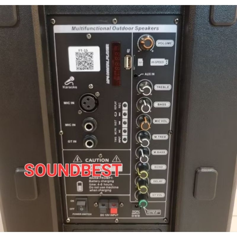 Speaker Portable 15 inch Soundbest FT 15 Free 2 Mic wirelles Bluetooth Usb Sd Mic Priority Gratis Ongkir