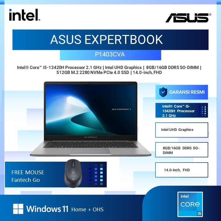 Laptop Asus Expertbook P1403CVA I3 1315 8Gb 512Gb W11+OHS 14.0Fhd 3Y