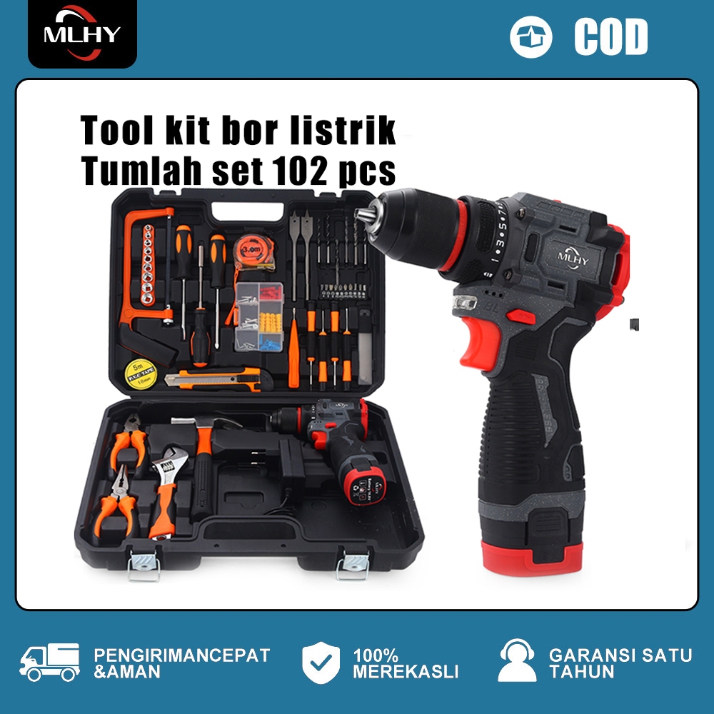 MLHY 102PCS Toolkit Bor listrik Alat Pertukangan Set bor listrik brushless Palu Handtool Box Set Socket Alat Rumah Box O