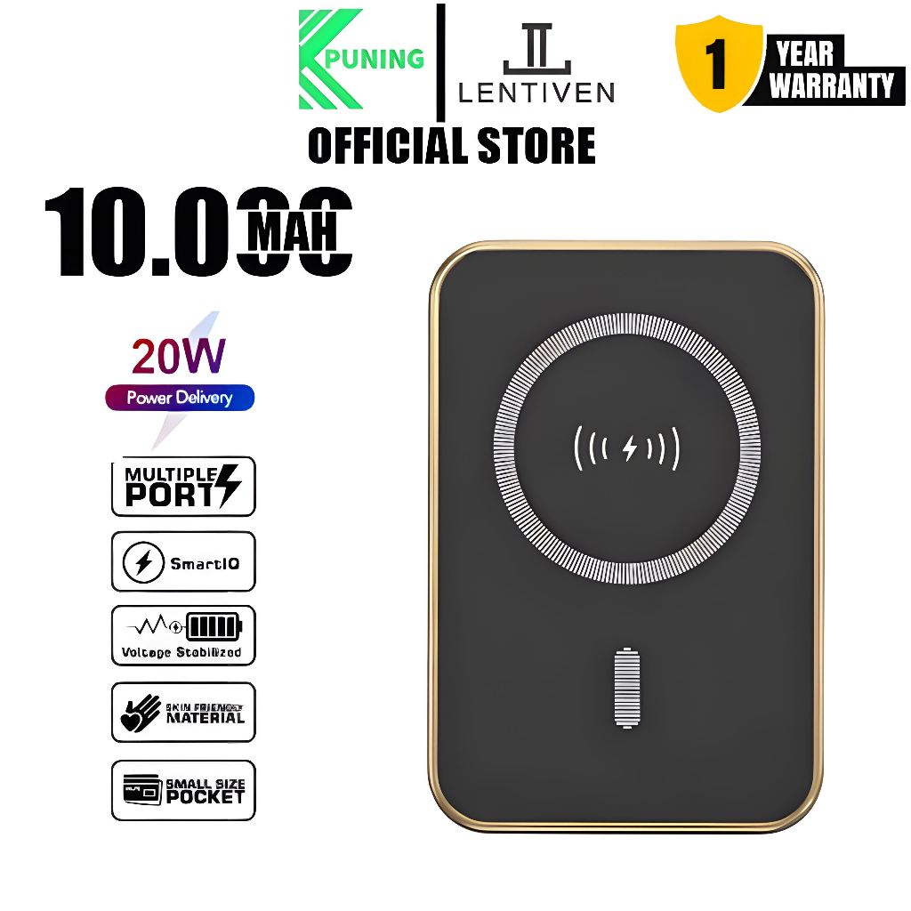 powerbank PUNING LENTIVEN 10000MAH FAST CHARGING Wireless Charger Mini Magnetic Magsafe 20W TYPE C WE47
