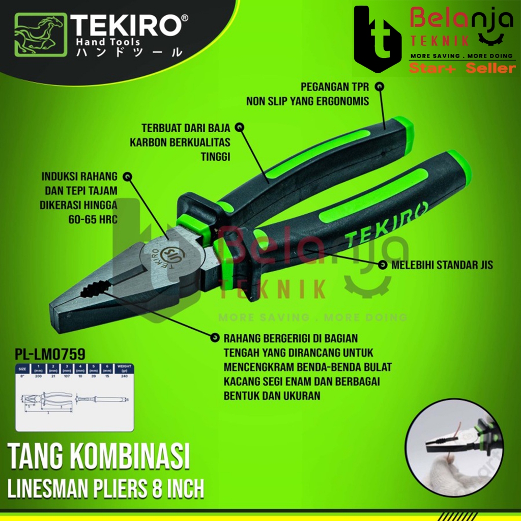 Tekiro Tang Kombinasi Ukuran 8 Inchi 8 In 8" Linesman Pliers Tekiro