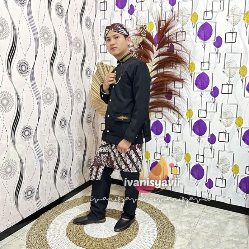 (1set Cowok) Baju Adat / Beskap +Sapit Urang +Blangkon +Benggol | Sunda Bordir- Lereng Garuda