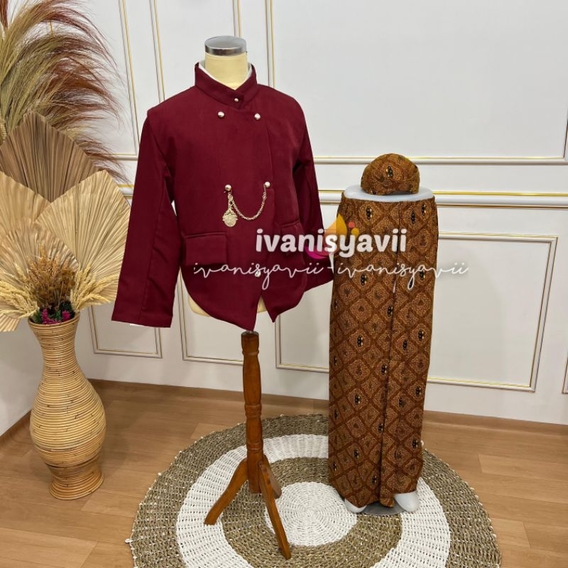 (1set Cowok) Baju Adat- Pagar Bagus / Beskap +Jarik +Blangkon +Benggol | Solo- Sido Mukti