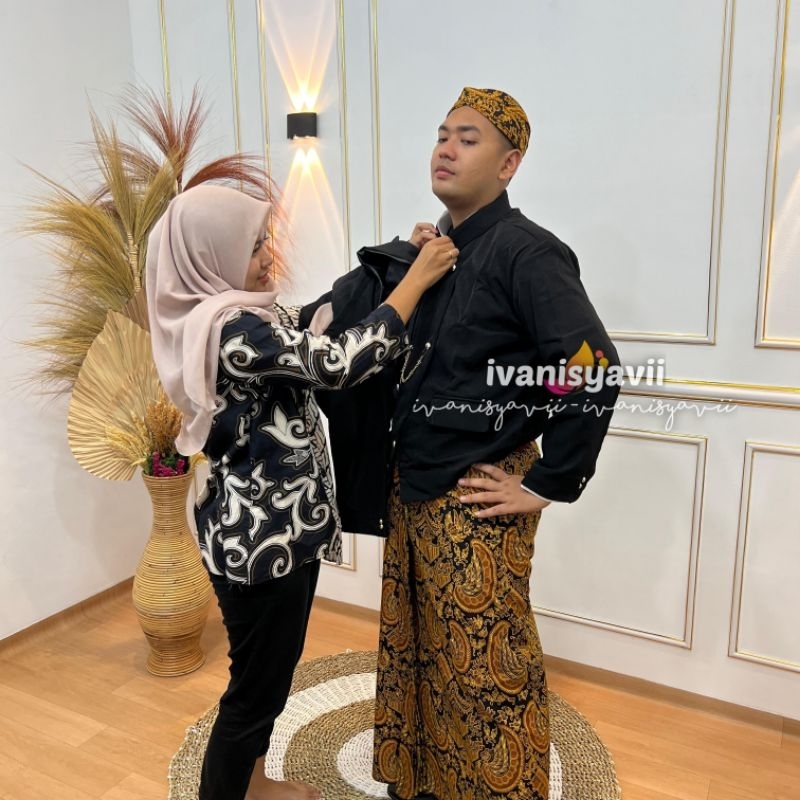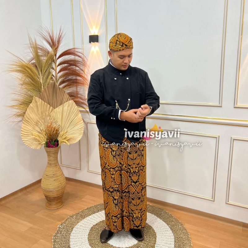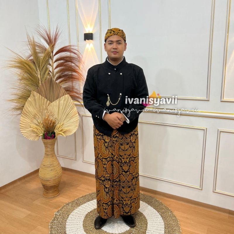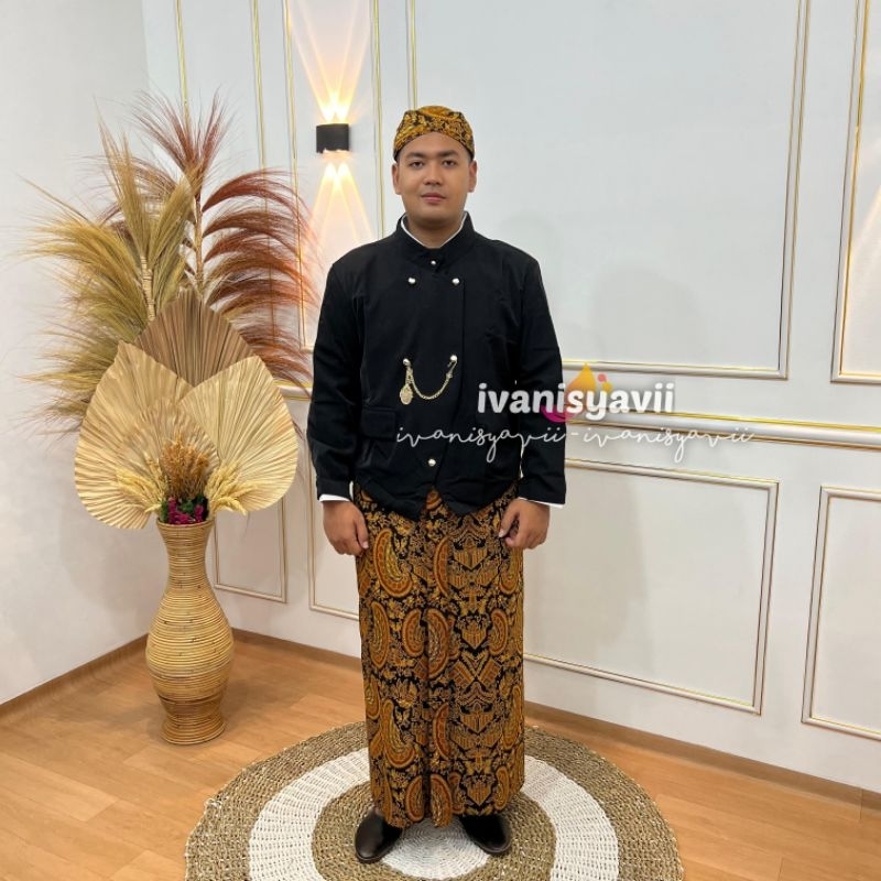 (1set Cowok) Baju Adat Jawa / Beskap +Jarik +Blangkon +Benggol | Solo- Semen Romo