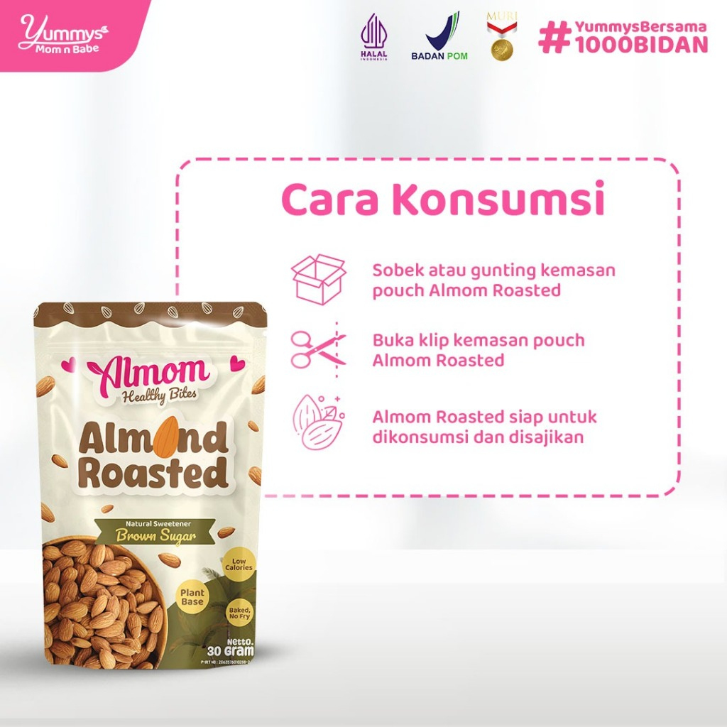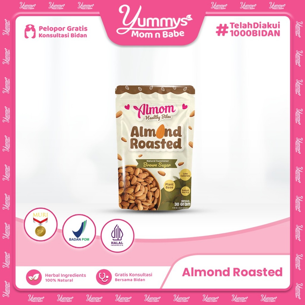 Almom Roasted - Kacang Almond Panggang 30gr | Camilan Sehat Rendah Kalori - Non MSG