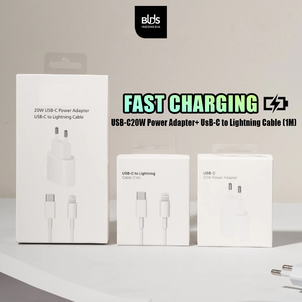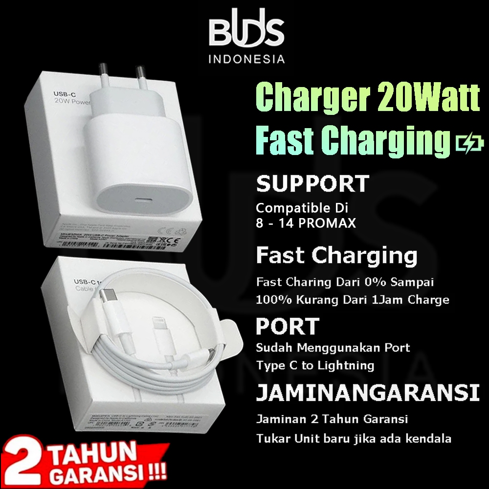 BUDS Charger iP 20w Fast Charging 1 Set Adaptor + Kabel for ip 8/9/10/11/12/13/14 Promax
