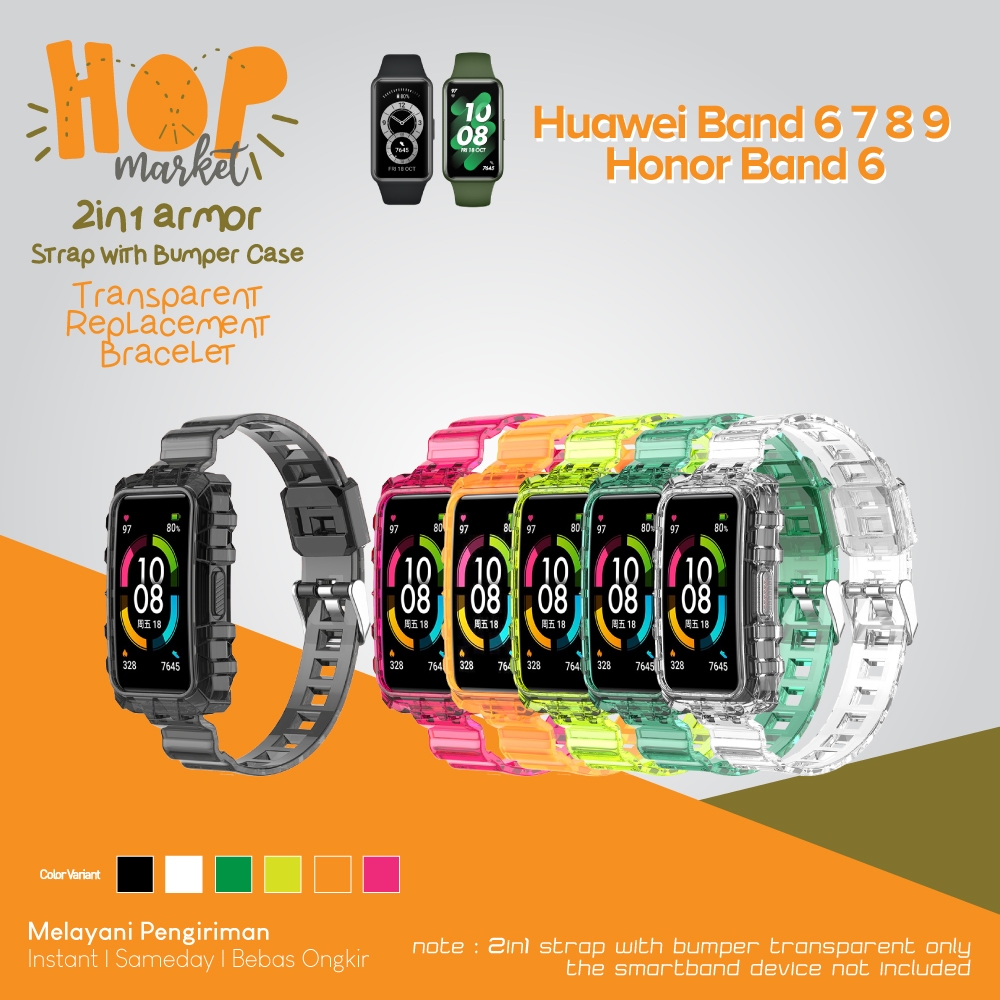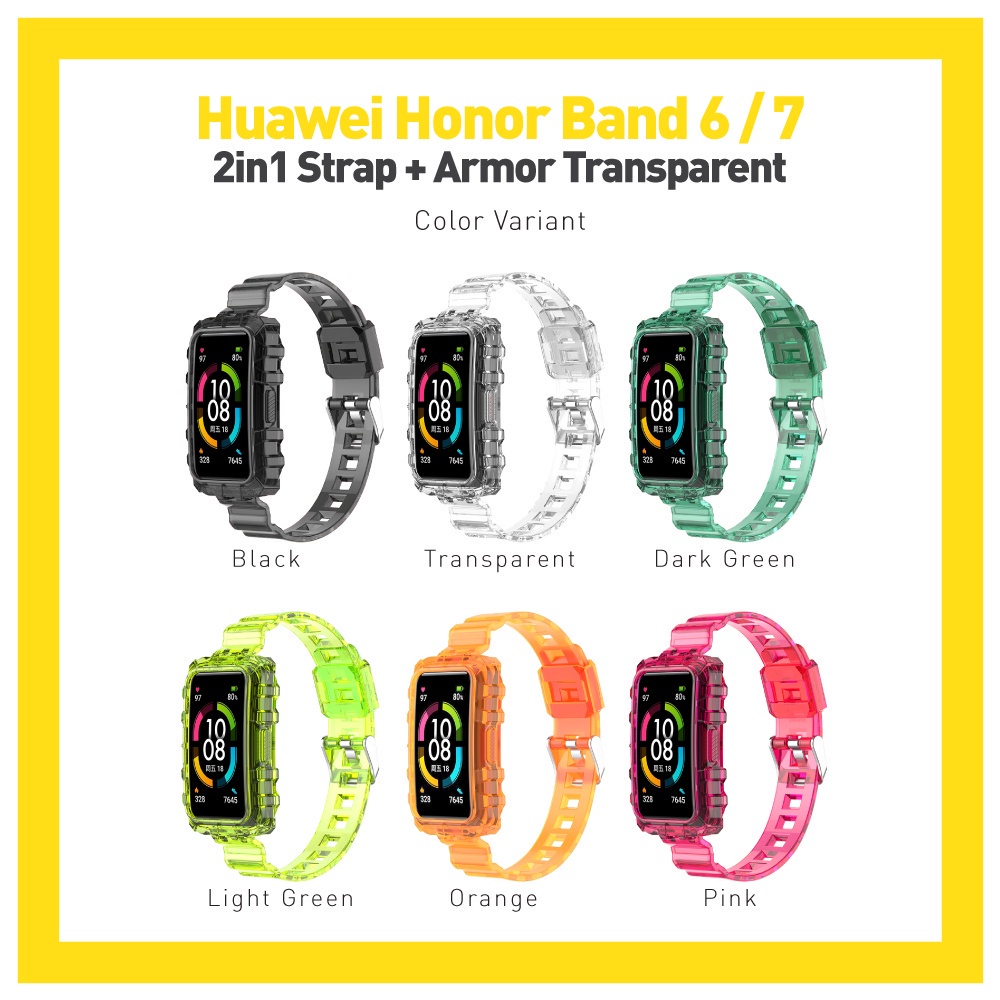 Armor 2in1 Rubber Strap with Bumper Case Cover for Huawei Band 10 9 8 7 / Honor Band 6 (Tali Jam Silikon Jelly TPU dengan Casing)