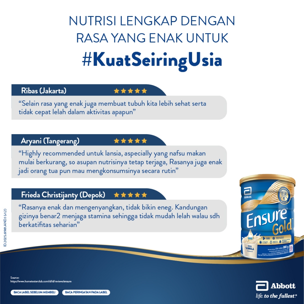 Ensure Gold HMB Vanila 150 g - Nutrisi Dewasa Rendah Laktosa