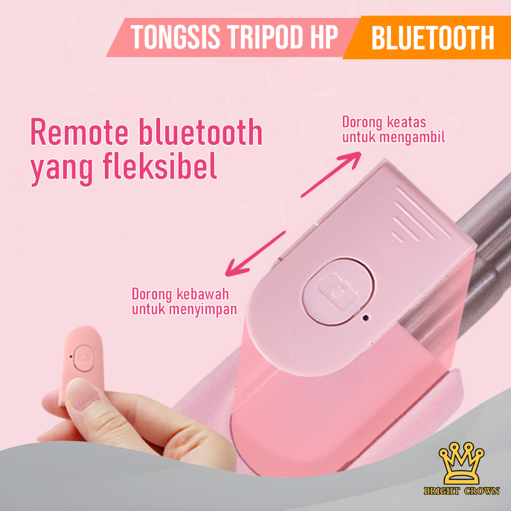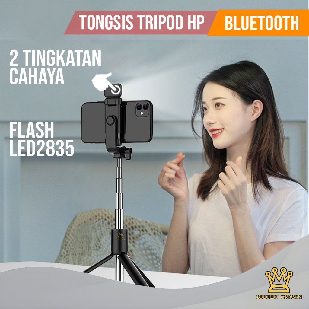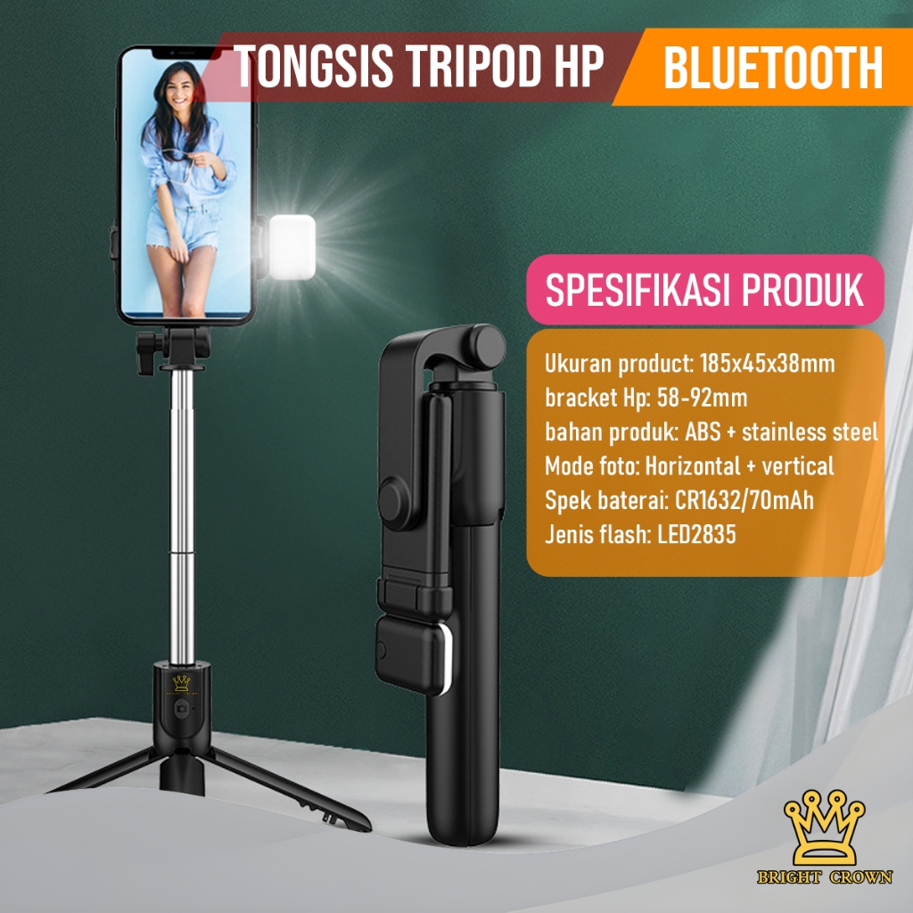 Bright Crown Tripod + Tongsis Wireless / 4in1 R1S Bluetooth Remote Control LED Flash Tongkat selfi