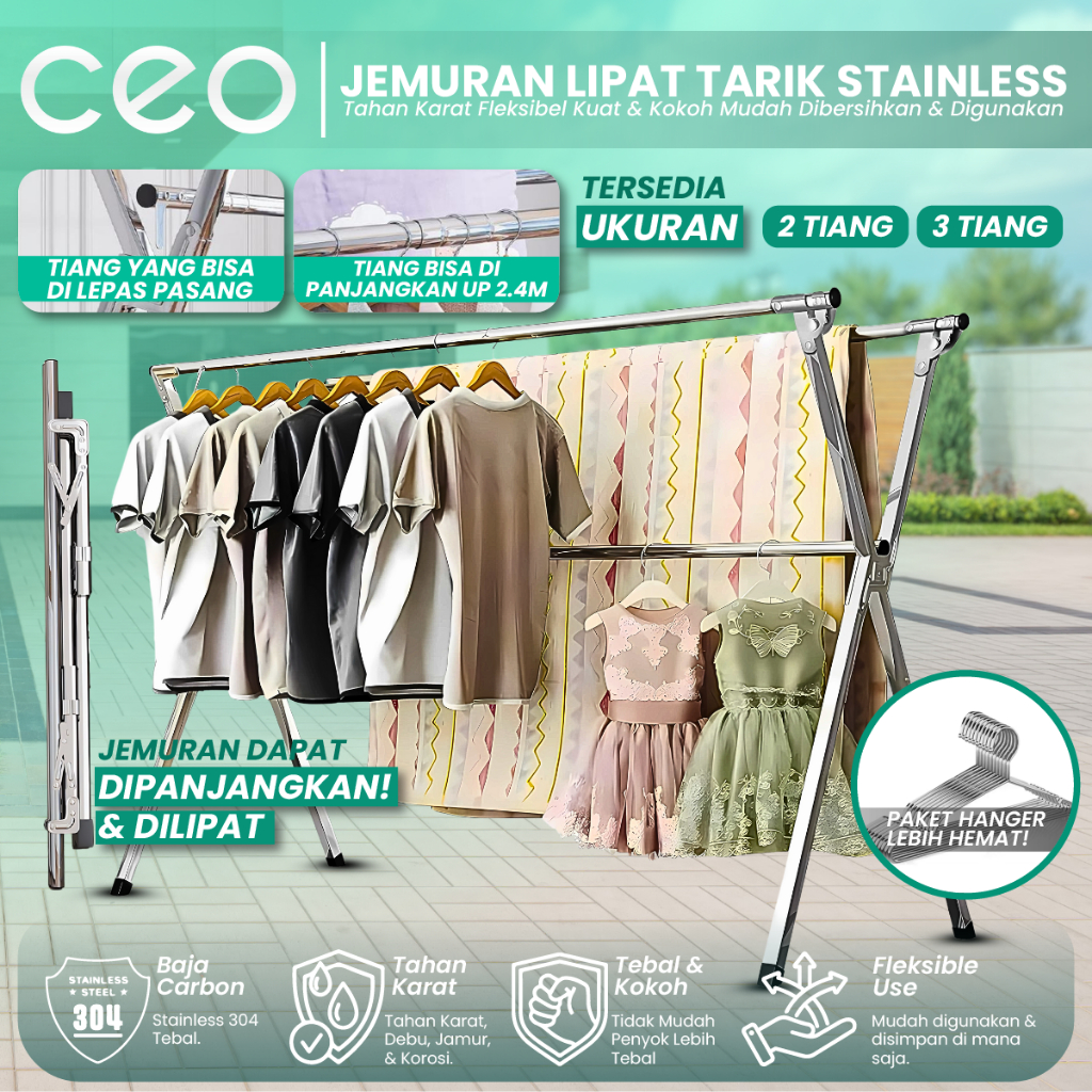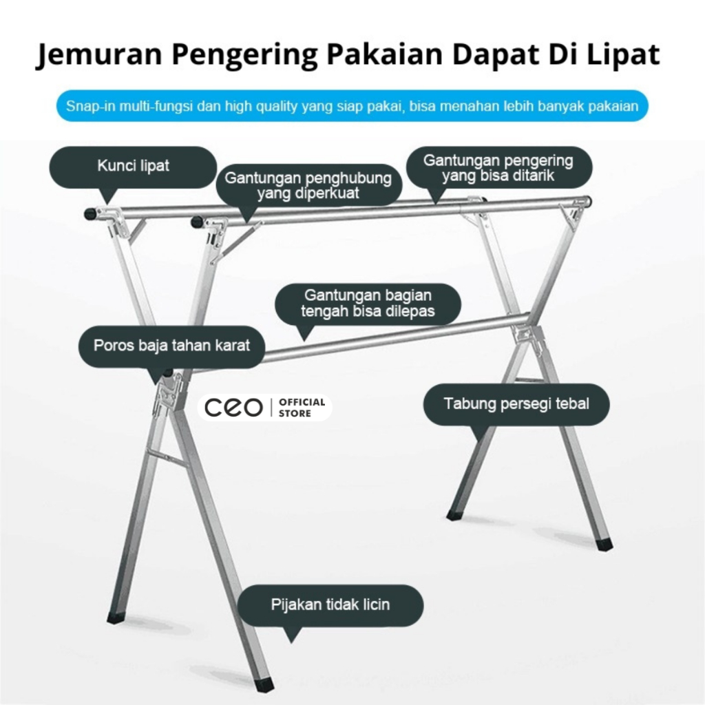 Tiang Jemuran Pakaian Gantungan Lipat Tarik Stainless Steel 304 Portable Tahan Karat Kuat Kokoh