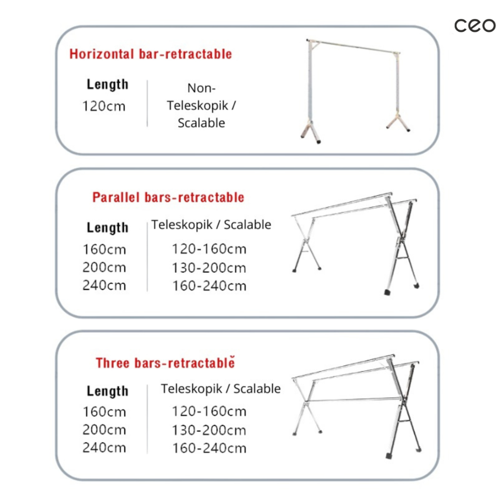 2 susun 160cm, 2 susun 200cm, 2 susun 240cm, 3 susun 160cm, 3 susun 200cm, 3 susun 240cm, Dinding - 3s 100cm, Dinding - 3s 150cm, Dinding - 3s 200cm, Dinding - 4s 100cm, Dinding - 4s 150cm, Dinding - 4s 200cm, Dinding - 5s 100cm, Dinding - 5s 150cm, Dinding - 5s 200cm, 3 Susun 160cm+Hanger, 3 Susun 200cm+Hanger, 3 Susun 240cm+Hanger, Gantung - 80cm, Gantung - 85-160cm, Gantung - 125-240cm