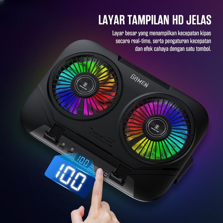 Cooling Pad Laptop Kipas Gaming 5 Inti 3900 Rpm 6 Level Fan Speed Dengan Phone Holder