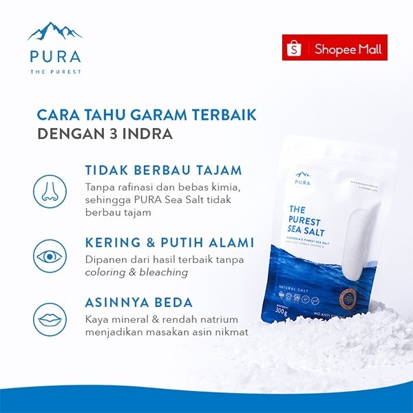Pura Sea Salt Fine (300gr) - Garam Laut Halus - Garam Organik - Garam Natural - Garam Laut Murni - Garam Sehat - Garam Rendah Natrium - Garam Sehat