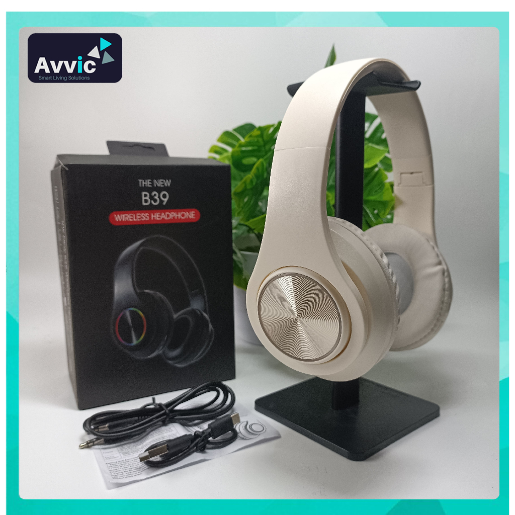 Avvic B39 Headphone Bluetooth 5.3 Wireless Headset Bando Mono Bass Hifi Sound Music RGB LED Light