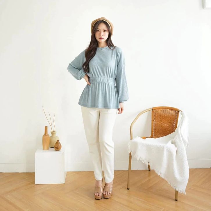 Atasan Wanita Kekkinian Malika Blouse Knit Korean Style Lengan Panjang Atasan Casual Lengan Panjang Motif Polos Murah